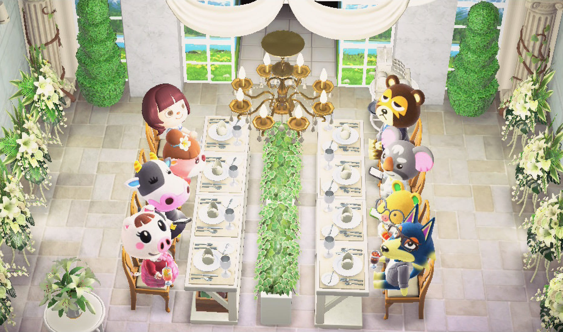前置きが長くなりましたが!まず会場を作ってみました😚完全に再現はできなかったんですが、、、緑やお花がたくさん置いてある華やかな会場だったので、雰囲気を参考にしつつ自然も沢山もりもりにして作りました🌹