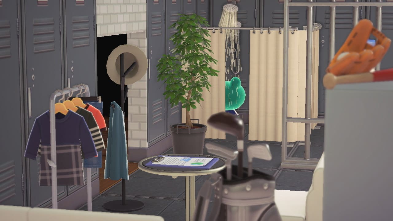 器具は黒系が多いので、全体を白・黒・シルバーのモノトーンで統一してスッキリ✨ 手前は更衣室、奥をトレーニングスペースにしてリアルなジム感を演出しました!