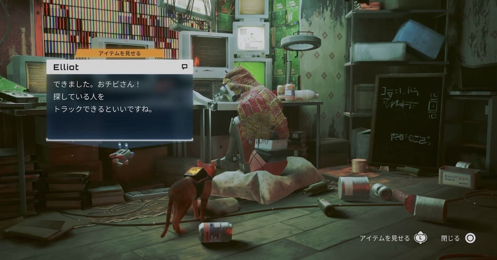 SeamusはDocがスラムに行ったきり帰ってこなくて、もう諦めてしまってる、、、🥲 でも父親に会える可能性があると分かれば協力してくれるかも!ここは猫ちゃんの出番です🐈