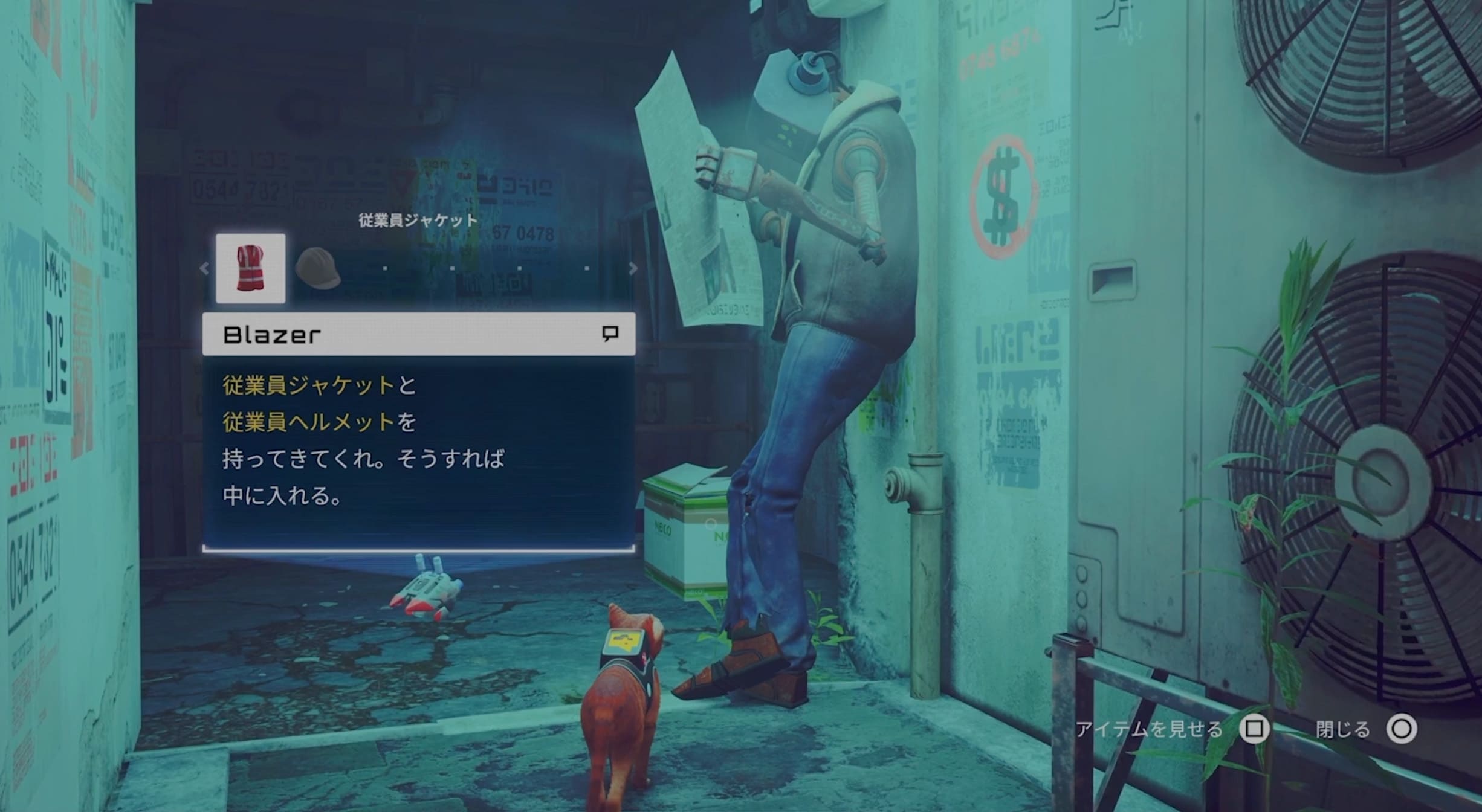 案内してくれる仲間のところへ向かうと、忍び込むために必要な従業員ジャケットと従業員ヘルメットを持ってきてほしいと頼まれます!