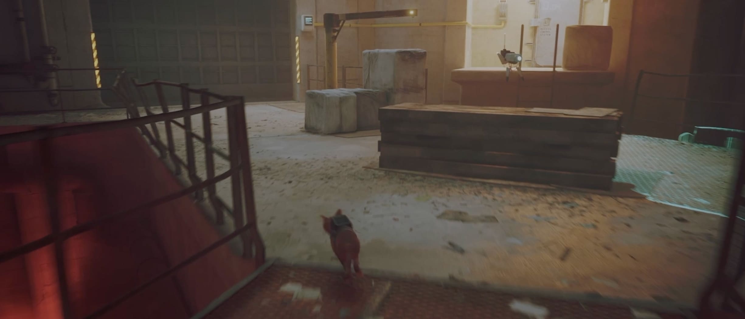 色々探索していく中で、住居エリアのマンションに到着🐈💭マンションには監視カメラと見張り兵が設置されていて、住民を常に監視しているようです。