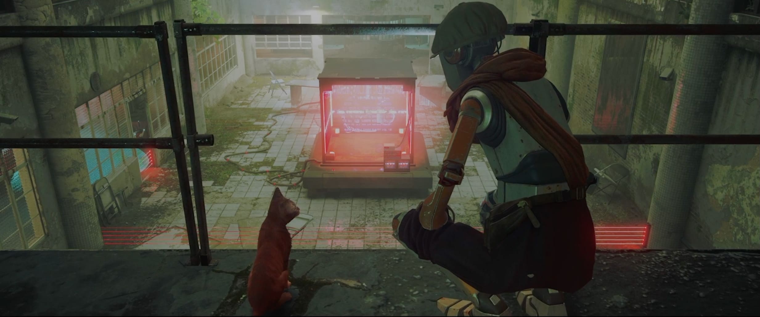 目を覚ますとジェイルという場所に移動していて、B-12の姿が無い・・・とりあえず、二人を探しに中を探索することに。 ここは刑務所のような雰囲気で檻の中にロボットが倒れていたり、とても薄気味悪いところです。(調べたら”ジェイル”=刑務所、拘置所という意味でした😂💡)